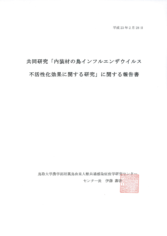- 鳥インフルエンザウイルス感染価が100分の1に鳥取大学 伊藤教授と共同研究