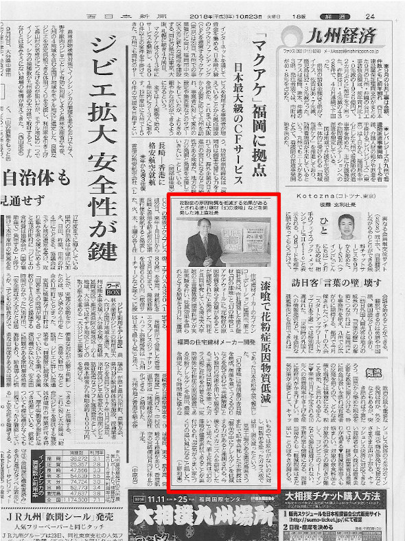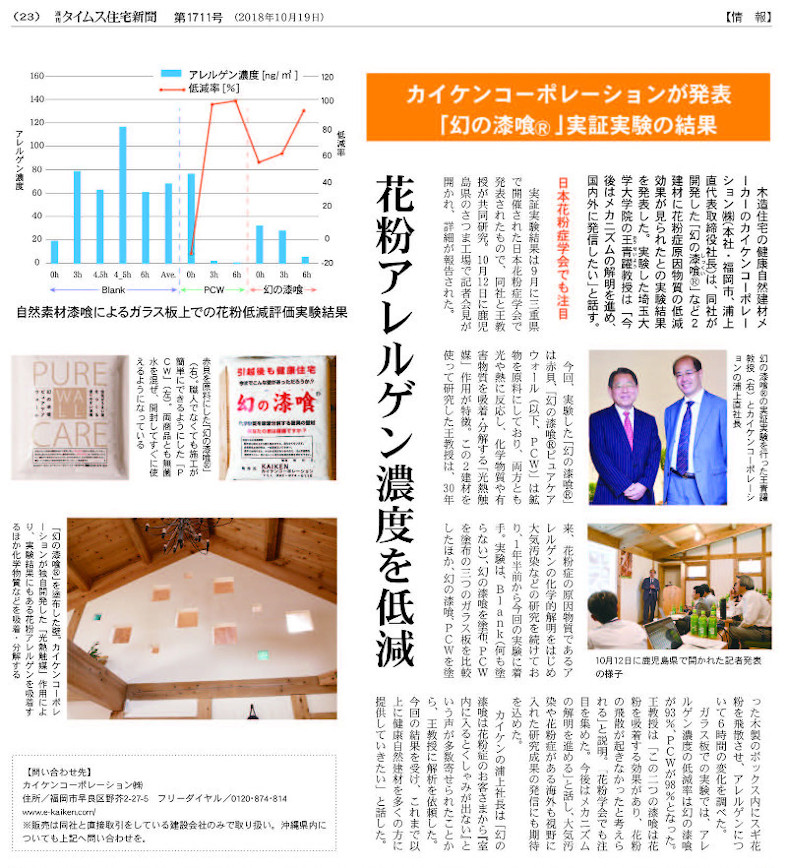 さらに、鳥取大学との共同研究により、鳥インフルエンザウイルスを100万分の一に抑制する効果や、埼玉大学との共同研究により、花粉症アレルゲンを90%以上減らす効果も実証されました。